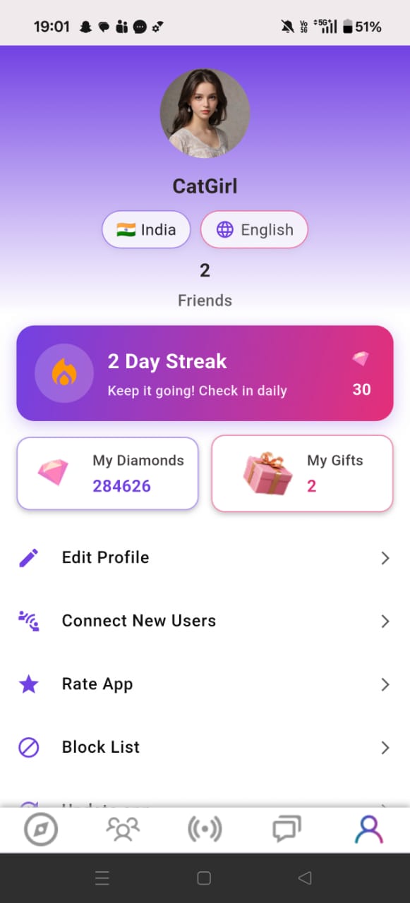 - Reward-Based Experience: Earn through gifts and calls, or collect daily diamonds to stay active.